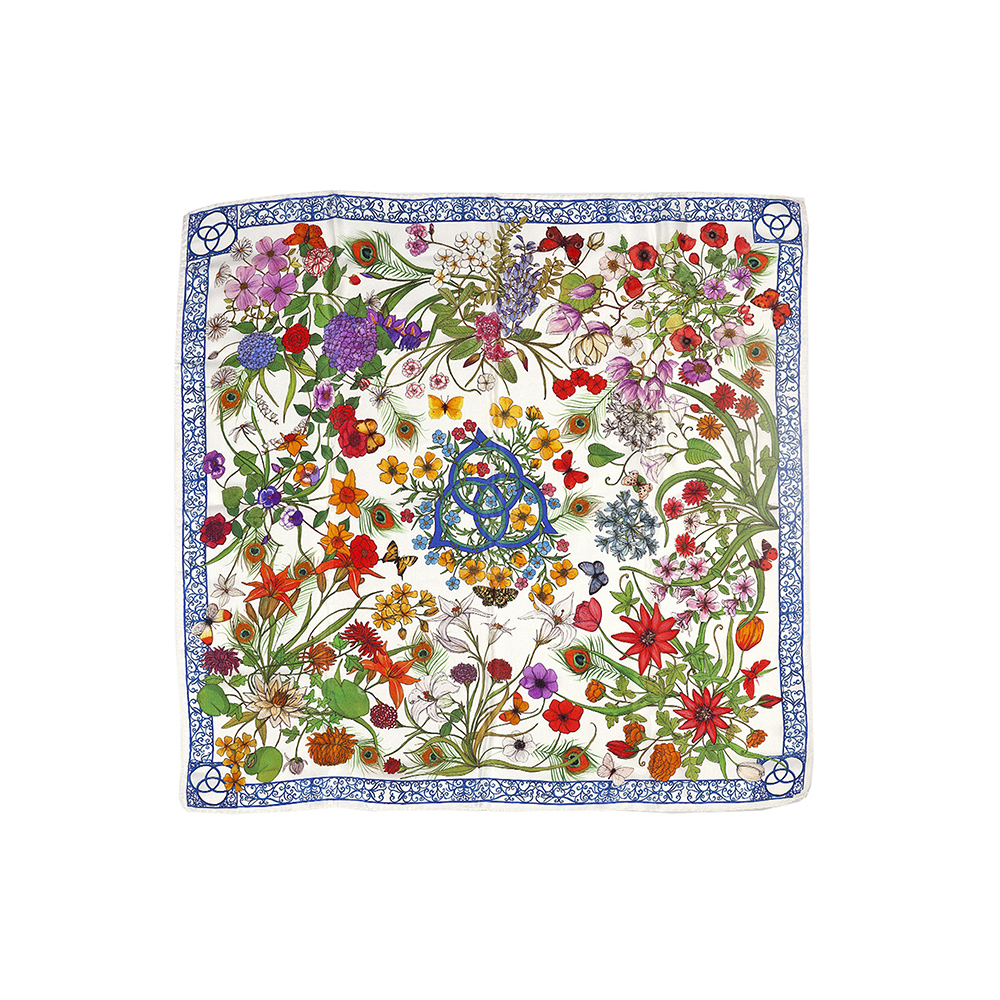 Inspired by the most outstanding floral elements of the gardens of Terre Borromeo, like yellow roses, white peonies, red camellias and typically violet irises, the silk foulards in the "Flora" line are signed by the illustrator Andrea Tarella, who works with prestigious, world-renowned fashion houses. Accessories that can add a creative, personalized touch of color to even formal, sophisticated outfits, these foulards are made of satin silk and come in shades of green, blue and bordeaux.