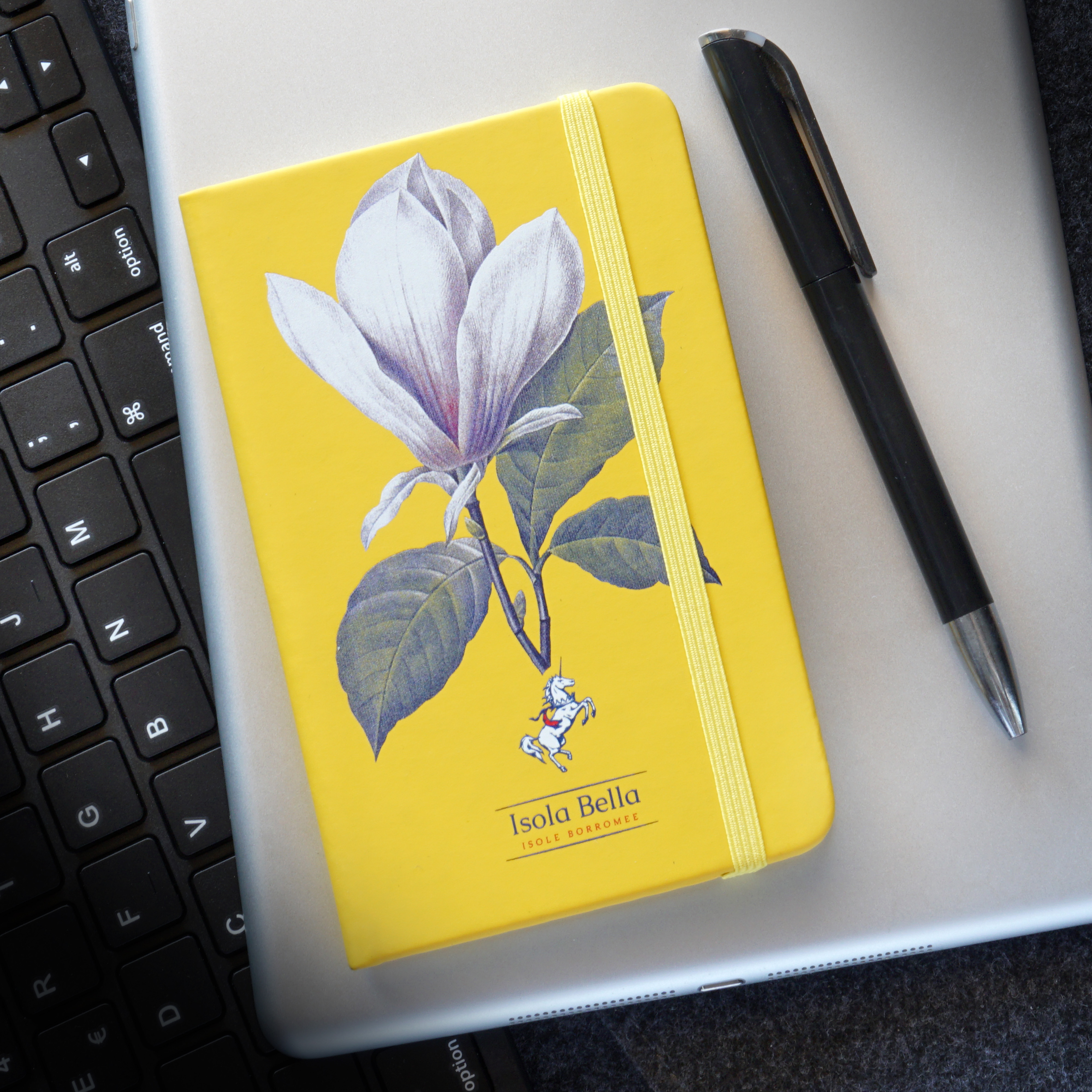 Pocket notebooks with lined pages, inspired by the botanical richness of the Borromeo gardens, the most magical and evocative places, and some of the most exquisite and original works of the historic-artistic heritage on display in the palaces of the Borromean Islands. The notebooks are available in the following versions: citrus, camellia, crocus, dahlias, magnolia, water lily, tulip.